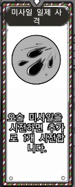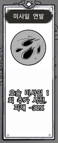 미사일 연발을 습득하게되면 1회에 발사된 오술 미사일 수만큼 다시 한번 발사한다. 만약 미사일 연발과 일제 사격이 둘다 동시에 나왔다면 마사일 연발을 먼저 습득할 것을 추천한다. (다시 언제 나올지 모름)