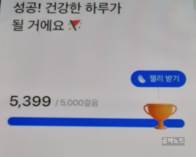 매일 5000걸음 달성 시 젤리를 1개씩 줘요. 한달 완료 시엔 스페셜 젤리를 한 개 추가로 지급해요.