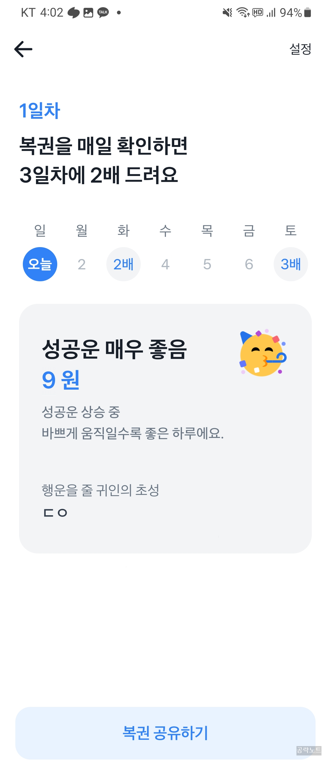 꾸준히 하기 쉽지 않은 기상미션이 있어요. 매일 아침 6시 ~ 7시 30분 사이에 로그인하여 미션확인을 하면 젤리를 주고 한 달을 3구간으로 나누어 연속 기상 성공 시 추가로 젤리를 주고 한달 100% 기상 시에는 스페셜 젤리 1개를 추가로 제공합니다. 매번 알람만 끄고 미션은 하지 않았던 경우가 여러번 있어요. 기상 미션은 출석미션과 다르게 놓쳤을 때 다시 채울 수 있는 방법이 없어요.