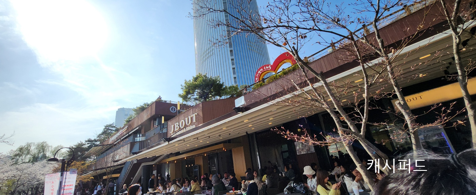 롯데월드타워: 탁 트인 서울 경관과 벚꽃을 동시에 담을 수 있는 포토존