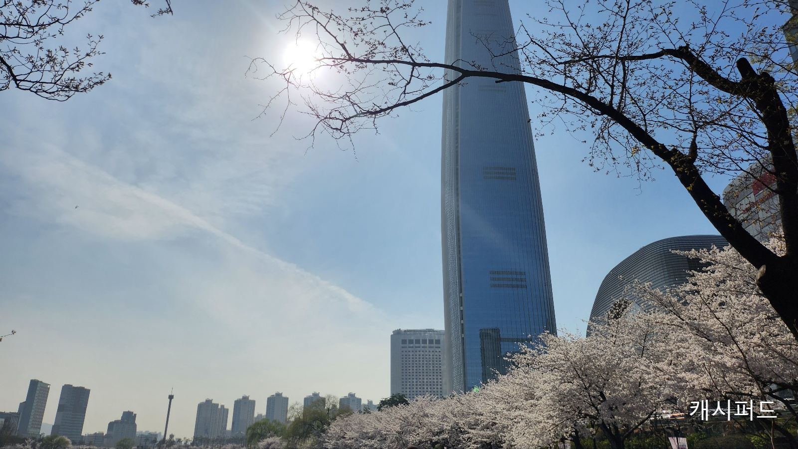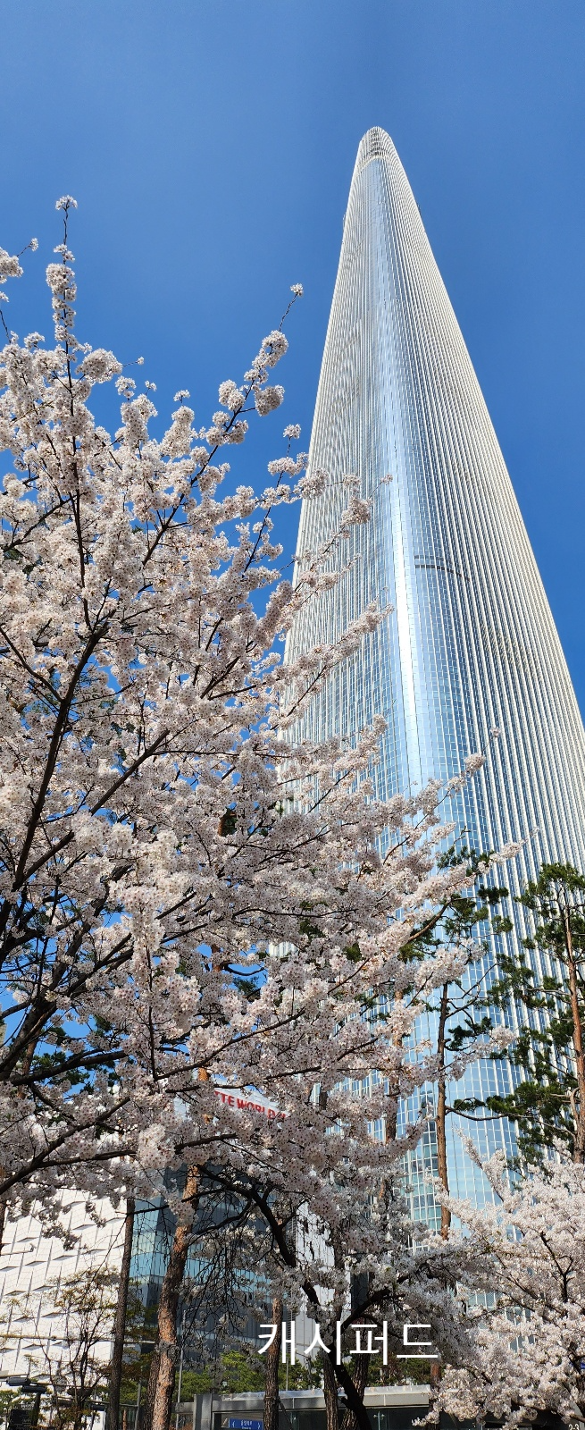 롯데월드타워: 탁 트인 서울 경관과 벚꽃을 동시에 담을 수 있는 포토존