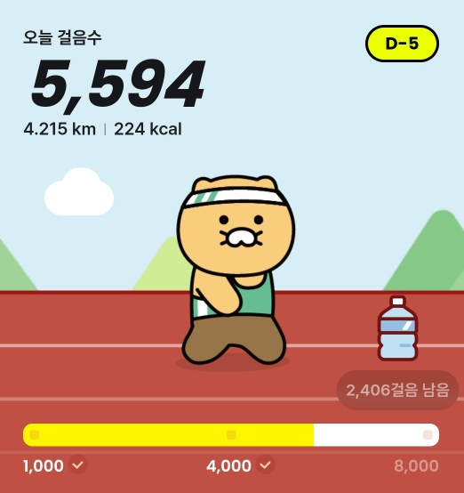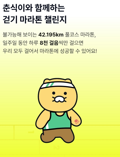 춘식이가 걷고 있는 화면 밑에 보면 3개의 걸음 목표를 알 수 있습니다.