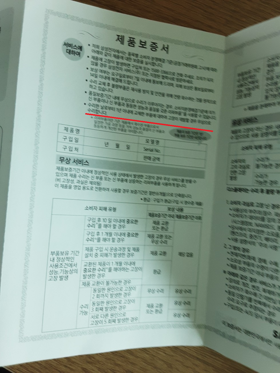 제가 2번째 수리도 무상으로 수리받을 수 있었던 건